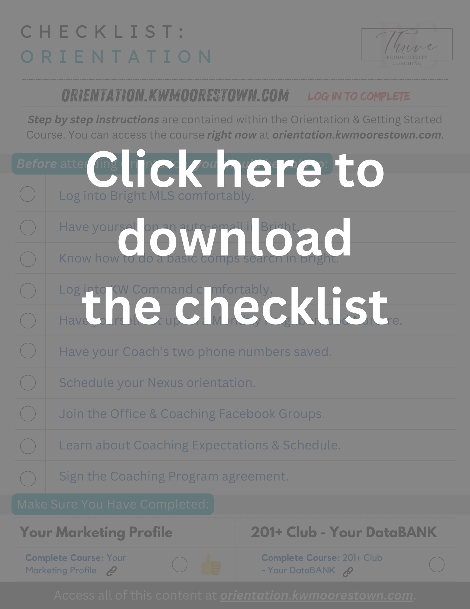 Show up to your Coaching Team orientation prepared to kickstart your Real Estate career.